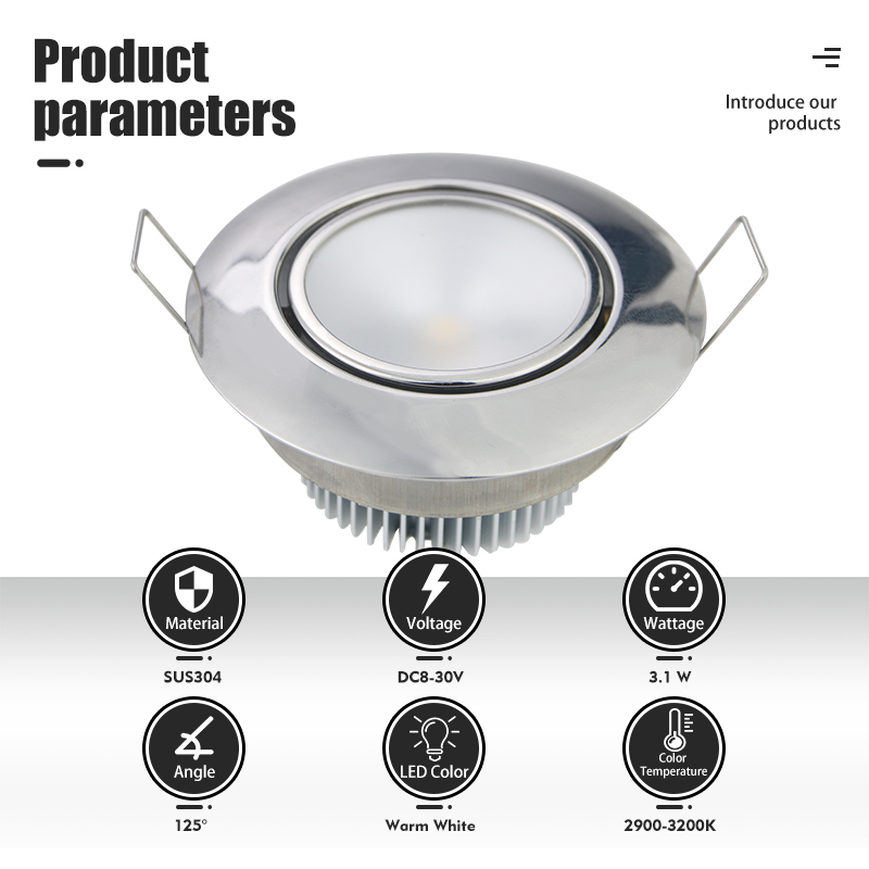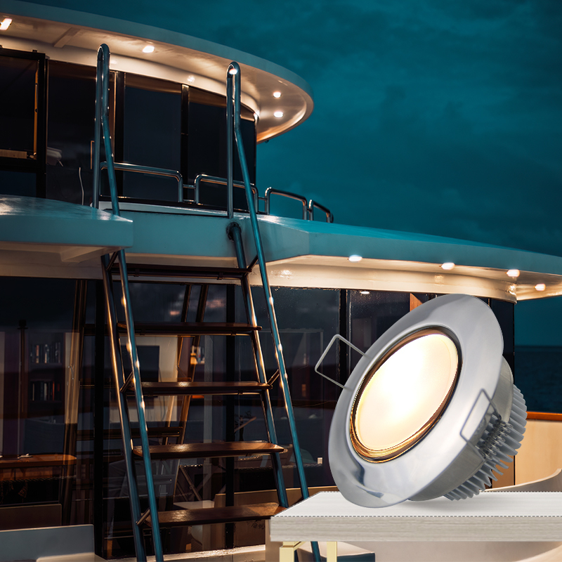This LED ceiling light for marine navigation is constructed from corrosion-resistant stainless steel and features an LED bulb. It is designed for flush spring mount installation, offering reliable performance and durability in marine environments.