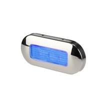 This LED Oblong Courtesy Light is designed for marine use, constructed from corrosion-resistant plastic and stainless steel, and features an LED bulb. Rated IP67 for water resistance, it is intended for recessed installation, providing reliable illumination and performance in marine environments.